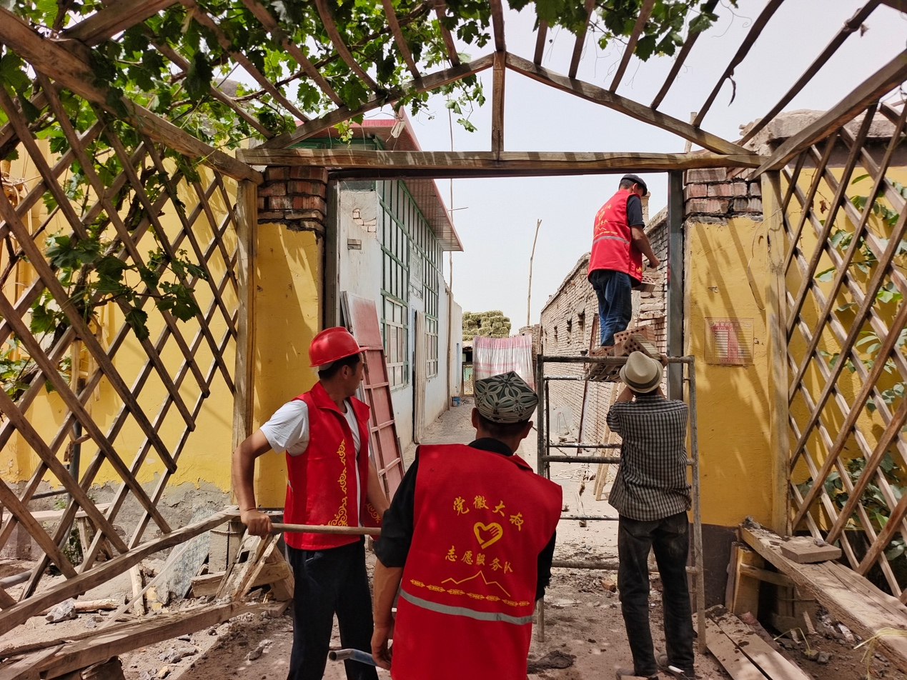 阿克陶县玉麦镇霍伊拉艾日克村驻村工作队队员帮助村民维修房门
